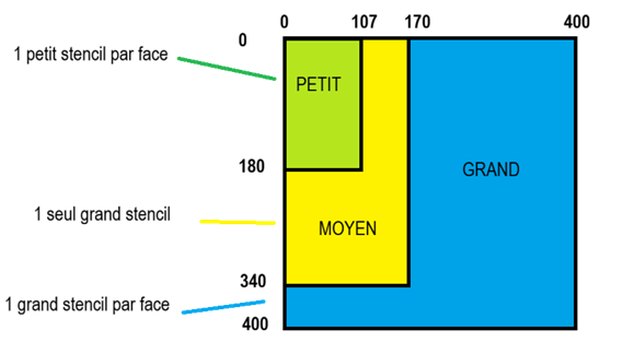 Il y a deux tailles de stencils : PETIT et GRAND. Selon la taille du PCB (configurable) on achète 1 ou 2 PETITS ou GRANDS stencils.